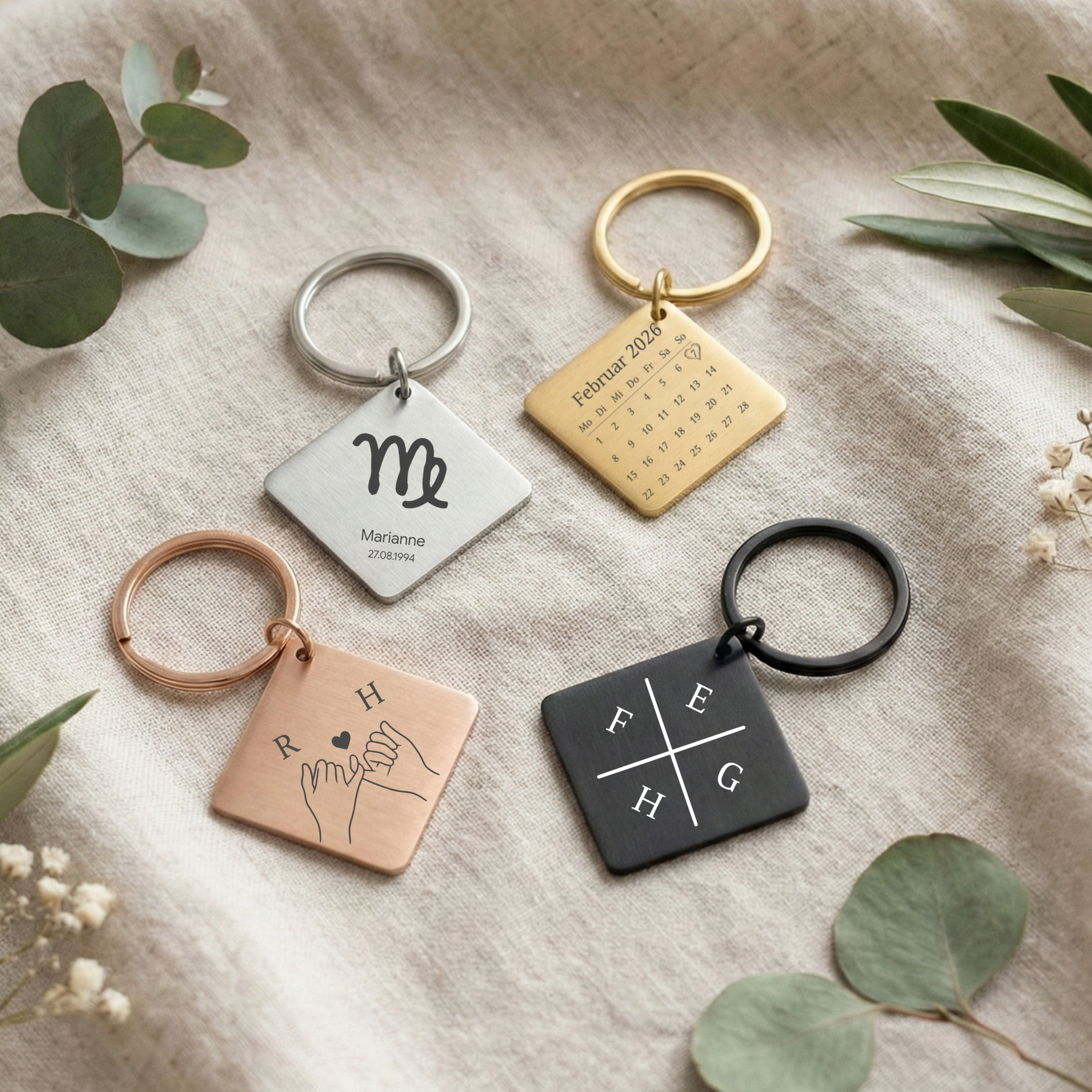 Wir bieten dir die Möglichkeit, personalisierbare Schlüsselanhänger zu gravieren.