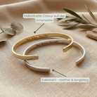 Der Armreif ist ein Schmuckstück, das sowohl funktional als auch stilvoll ist. Er ist aus hochwertigem Stainless Steel hergestellt und verfügt über eine gehämmerte Außenseite, die ihm einen besonders edlen Look verleiht. Auf der Innenseite des Armreifs kann eine persönliche Gravur angebracht werden, um ihn noch individueller und einzigartiger zu machen.